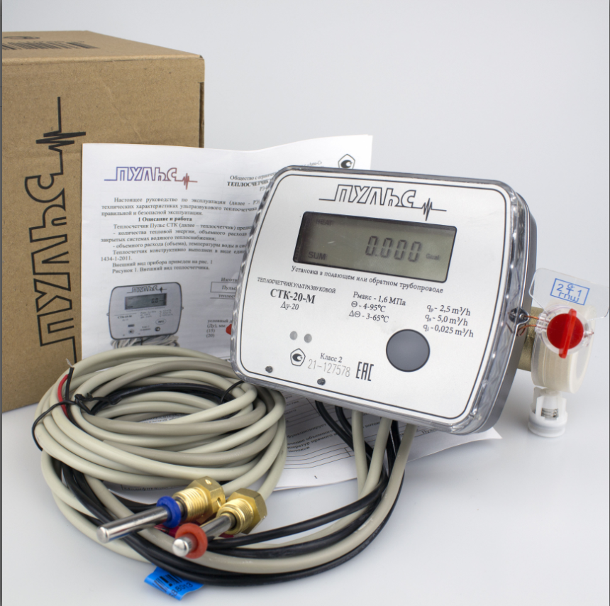 Теплосчетчик/Счетчик тепла Пульс СТК-20-М (Комплект для установки)