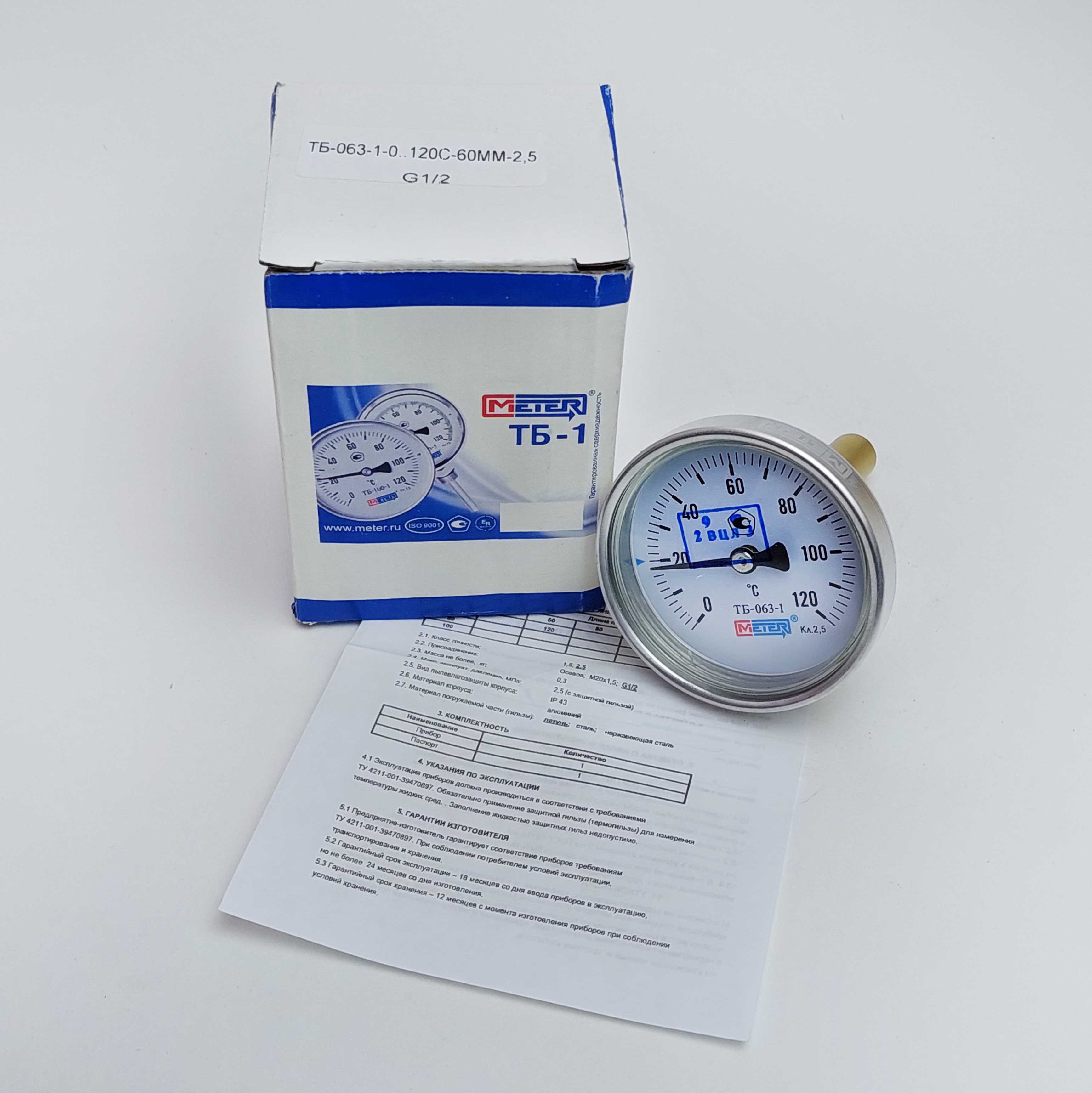 Термометр биметаллический Метер ТБ-1, 063, 0-120С, 60, 2,5, G1/2"