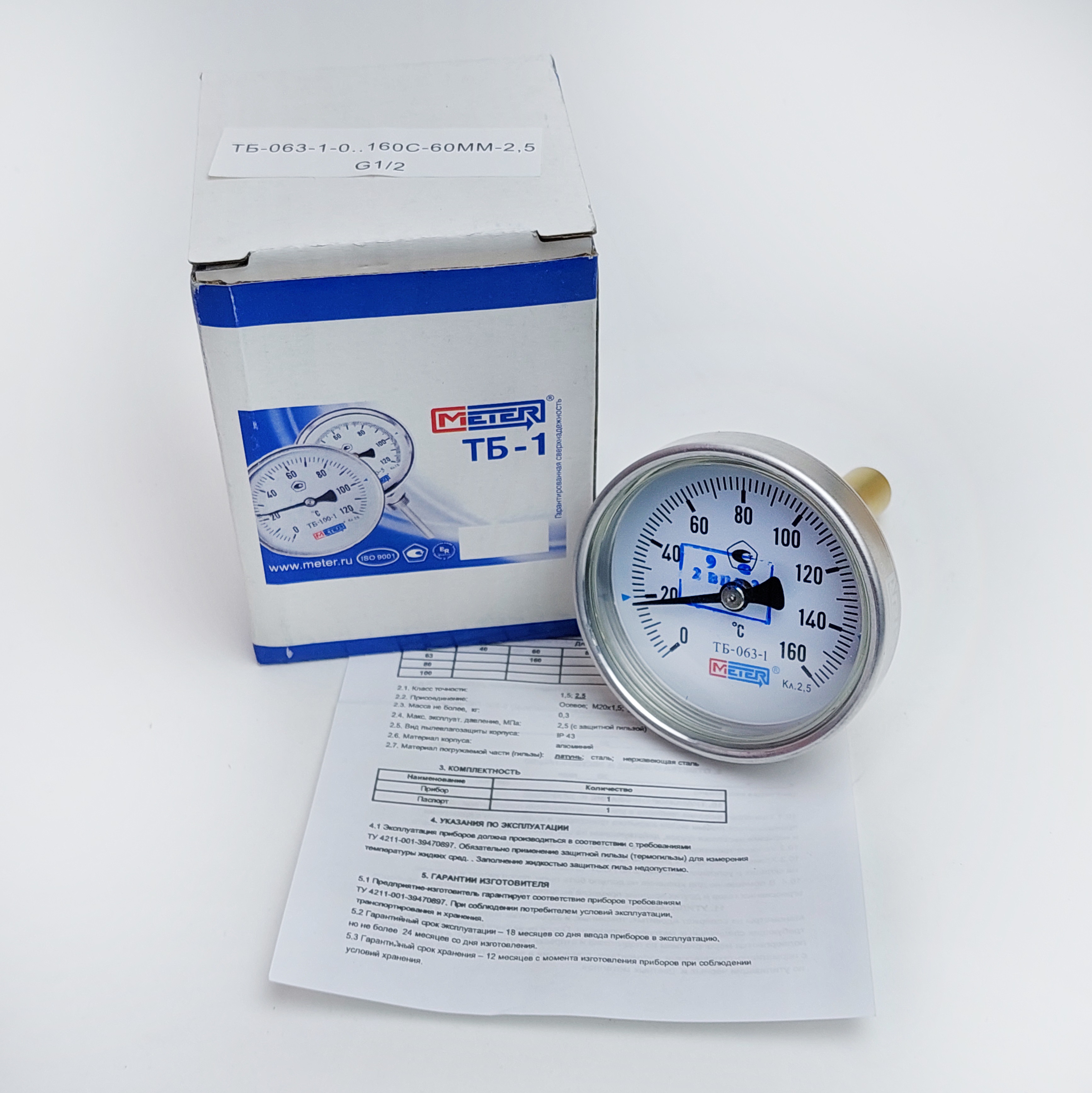 Термометр биметаллический Метер ТБ-1, 063, 0-160С, 60, 2,5, G1/2"
