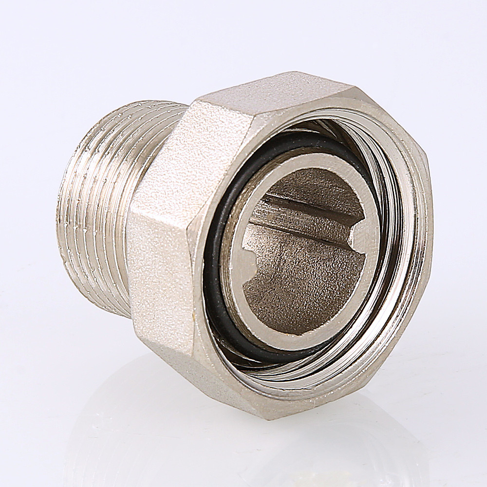 Материал фитинга – сантехническая латунь CW617N. Детали никелированы. Конструкция соединителя содержит уплотнительное кольцо из эластомера EPDM.