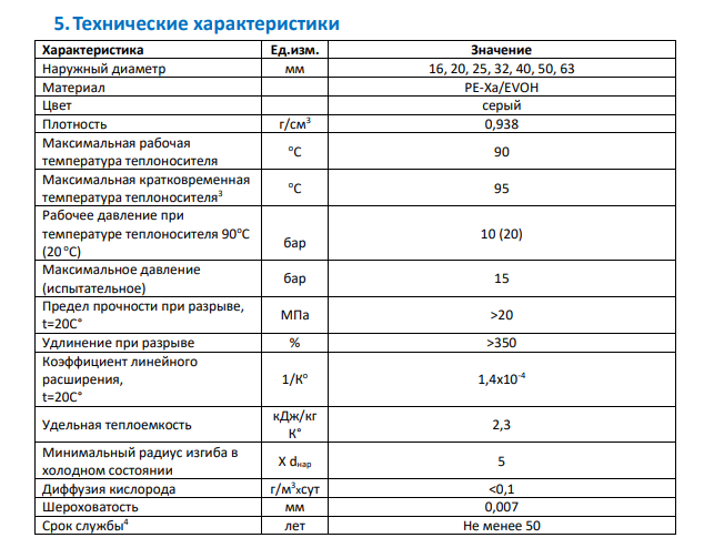 • Антидиффузионный слой EVOH (сополимер этилена и винилового спирта) защищает систему от проникновения кислорода, способствует предотвращению коррозии металлических элементов системы.