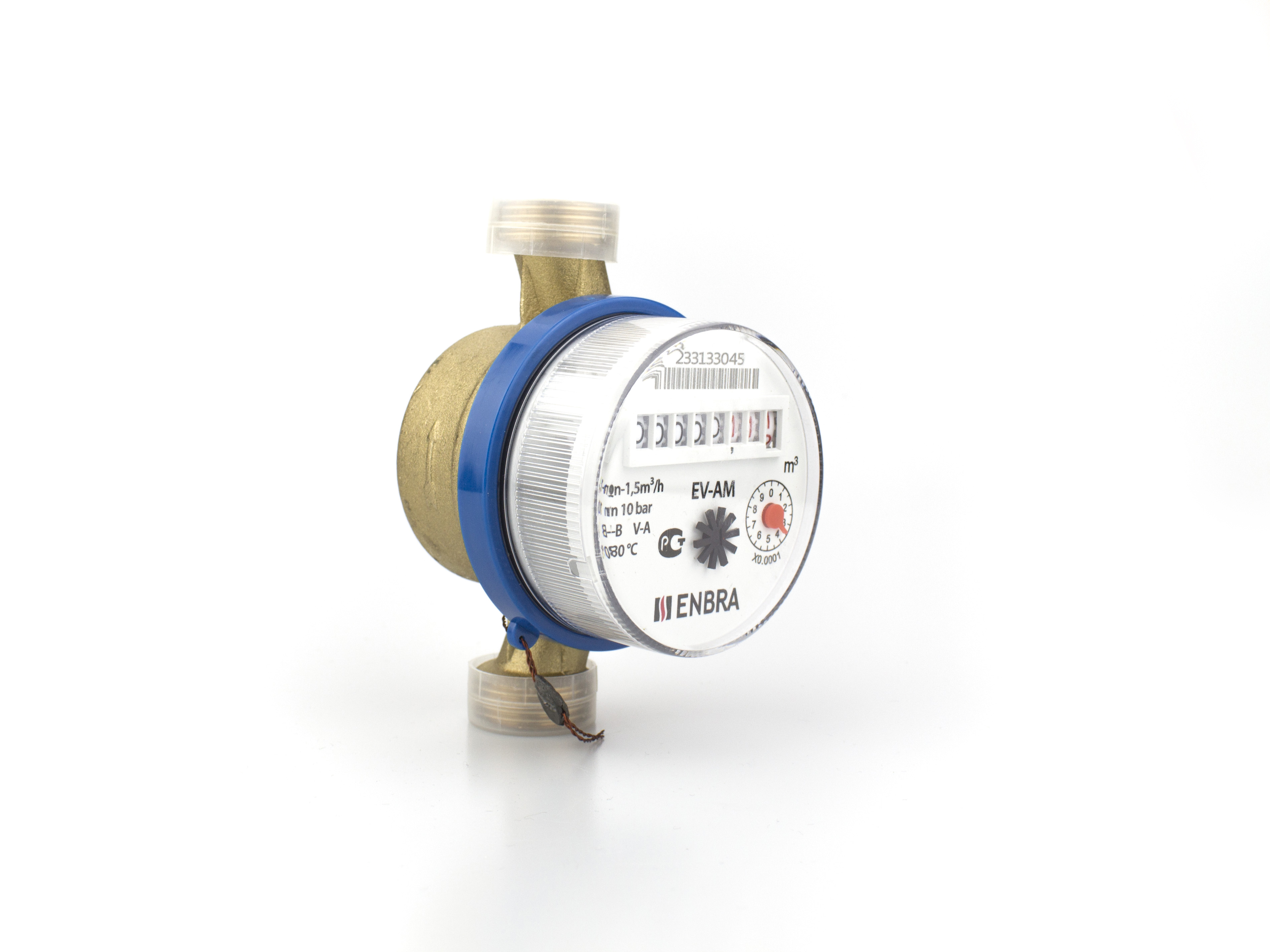 Счетчик воды EV-AM имеет модификацию: EVAMi с импульсным выходом, который обеспечивается герконовым преобразователем типа МКа 10105. Так же, возможны механические счётчики с условным проходом ДУ 15 (qp 1,5) и ДУ 20 (qp 2,5).Состоят счетчики из проточной части, в полости которой находится крыльчатка, и отсчетного устройства, редукторный механизм которого связан с крыльчаткой через магнитную муфту. Для определения объема воды (м3) масштабирующий редуктор счетного механизма имеет восемь барабанчиков. Корпус счетчиков изготовлен из латуни, а крыльчатка и отсчетное устройство из пластмассы. Вращающийся счётный механизм имеет вакуумное уплотнение и двух подшипниковую посадку в сапфировых гнёздах, которые гарантирую стабильность получаемых метрологических характеристик и долговечность счетчиков. А удобная шкала считывания, допускает горизонтальную или вертикальную установку прибора. Счетчики воды EV-AM и EV-AM1 имеют отличную антимагнитную защиту, обеспеченную четырьмя антимагнитными сегментами. Счетчики холодной и горячей воды ENBRA внесены в государственный реестр средств измерений России.