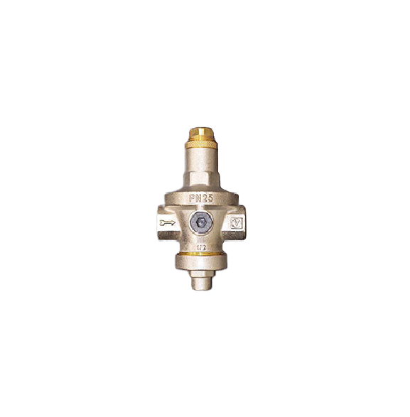 (VT.085.N) Назначение мембранного редуктора – поддержание заданного давления в установках отопления, водоснабжения, технологических системах, транспортирующих жидкости, неагрессивные к примененным материалам. Диапазон настроек – 1–7 бар, заводская настройка – 3 бара. Стабильность регулируемого параметра обеспечивается независимо от скачков сетевого давления. Наличие демпфирующей камеры позволило минимизировать допустимые колебания выходной величины: ±5 %. Редуктор с двух сторон имеет отверстия с резьбой ¼” для установки манометра. Благодаря отсутствию трущихся частей мембранные редукторы менее зависят от загрязненности воды, чем поршневые, более надежны. Мембрана выполнена из армированного EPDM. Максимальная рабочая температура – 80 °С, номинальное входное давление – 25 бар.