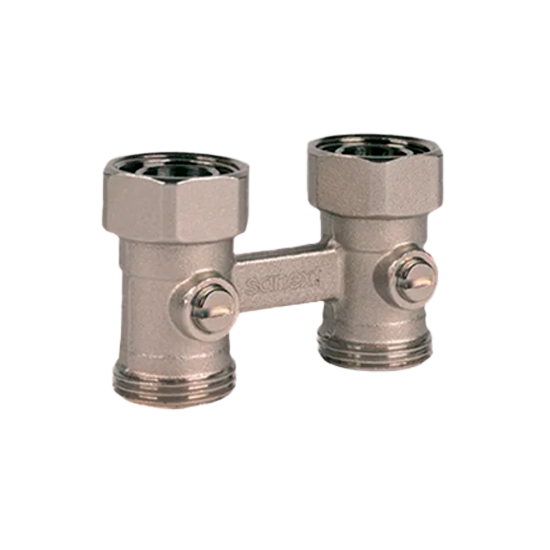 Узел SANEXT для нижнего подключения радиатора предназначен для присоединения к разводящим трубопроводам горизонтальных двухтрубных систем отопления, отопительных приборов с нижним расположением присоединительных штуцеров с межосевым расстоянием 50 мм.