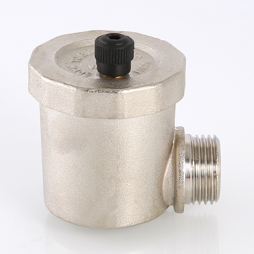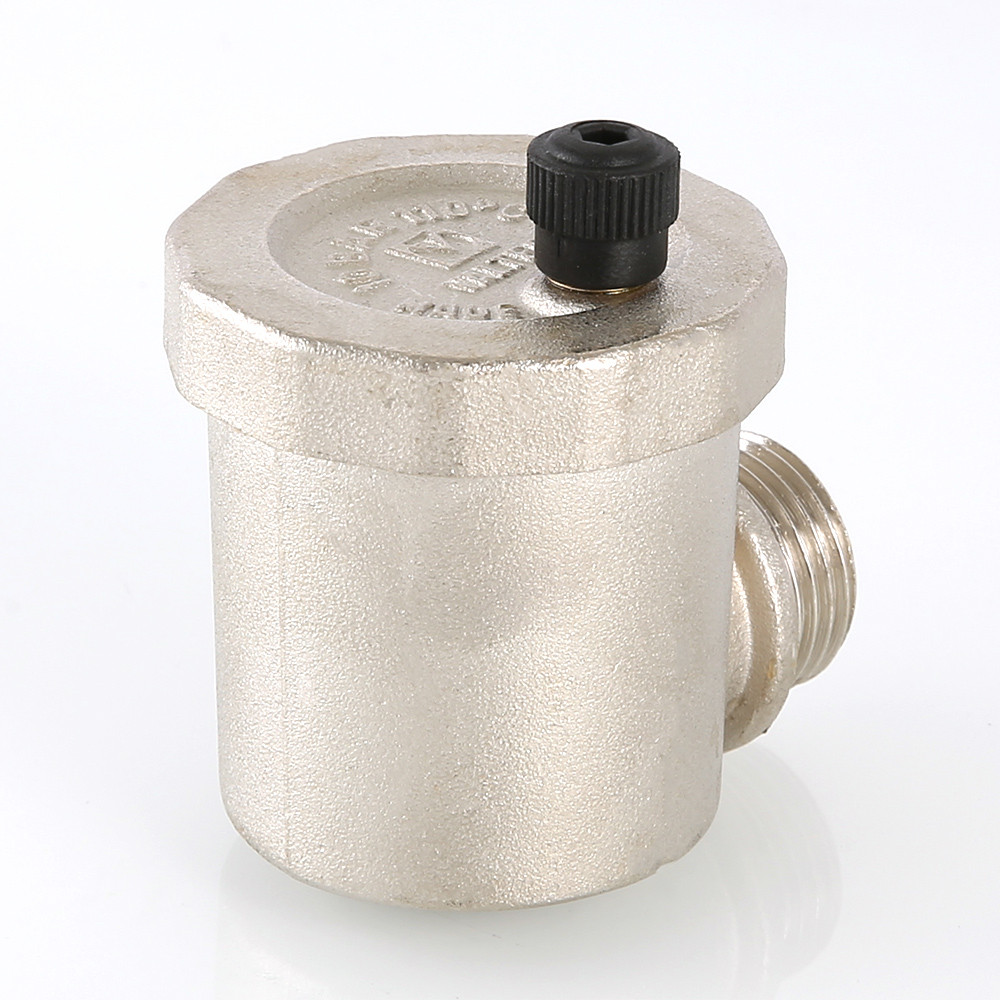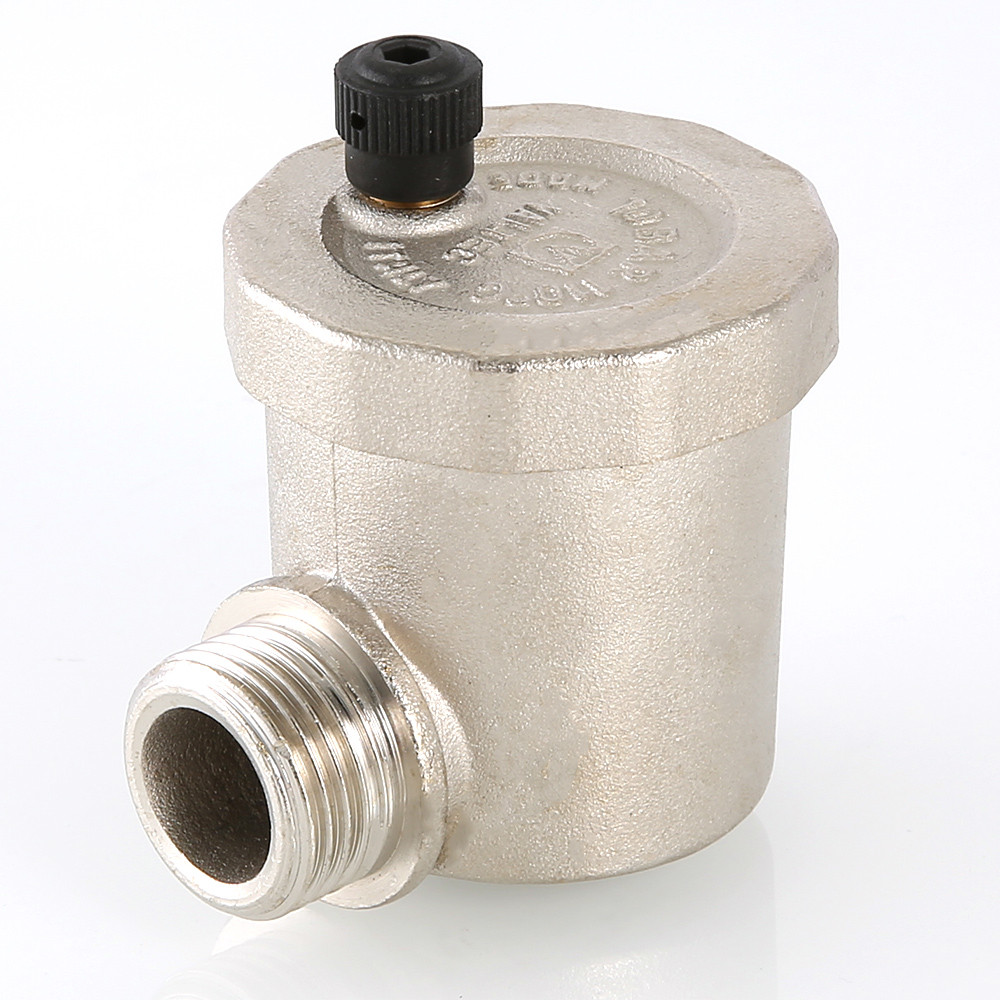(VT.502.NA) Воздухоотводчик автоматический угловой может использоваться на трубопроводах, транспортирующих воду, этилен- и пропиленгликолевый незамерзающий теплоноситель, другие жидкости, неагрессивные к материалам изделия. Конструкция воздухоотводчика – поплавковая, с рычажным исполнительным механизмом. Ремонтопригодный. Детали корпуса воздухоотводчика выполнены из качественной сантехнической латуни, никелированы. Присоединительная резьба – наружная, 1/2".