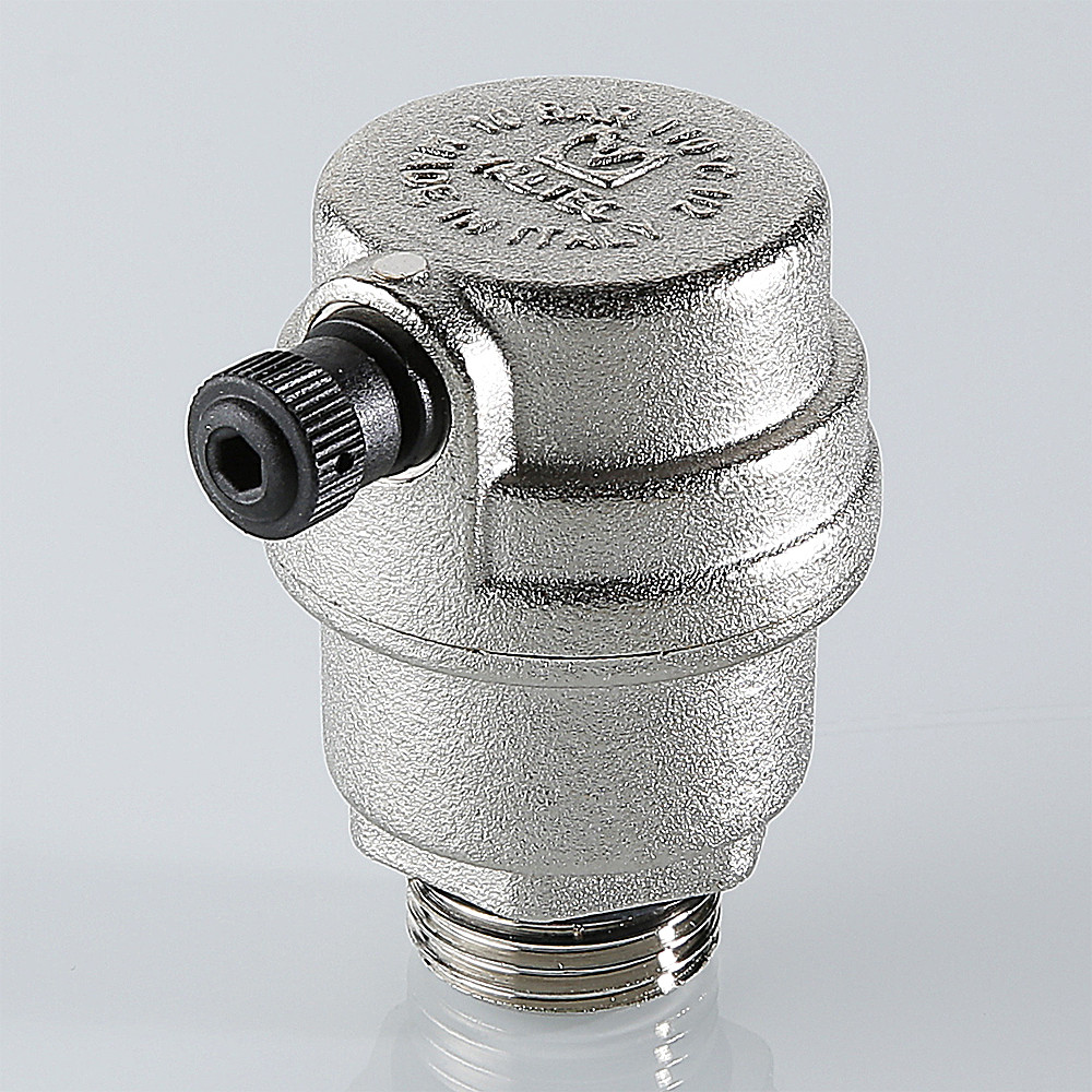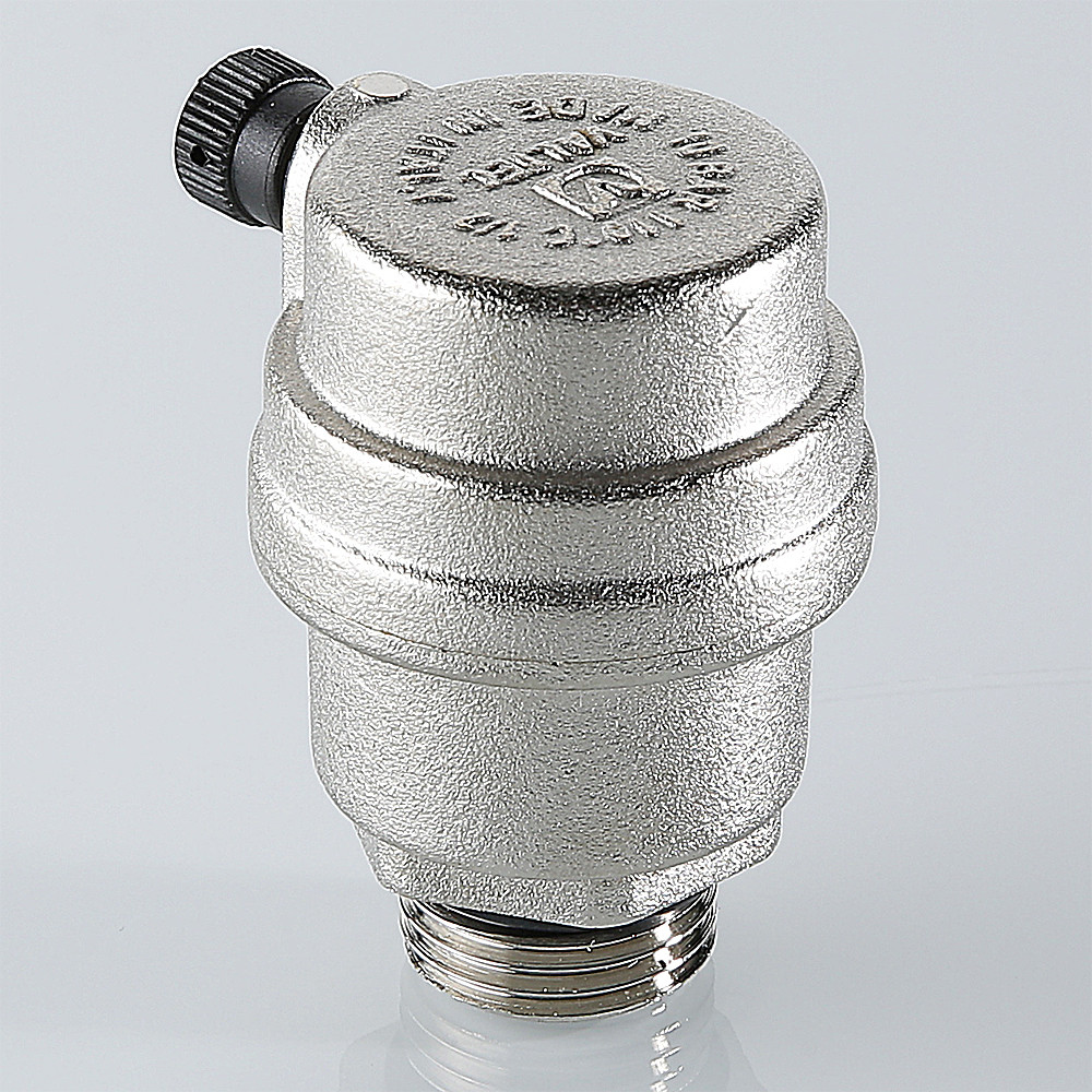 (VT.502.NH) Автоматический воздухоотводчик поплавкового типа с пружинным золотником. Может использоваться на трубопроводах, транспортирующих воду, этилен- и пропиленгликолевый незамерзающий теплоноситель, другие жидкости, неагрессивные к материалам изделия. Ремонтопригодный. Детали корпуса воздухоотводчика выполнены из качественной сантехнической латуни, никелированы. Материал уплотняющей прокладки – эластомер EPDM, поплавка – полипропилен, пружины – нержавеющая сталь AISI 306, держателя золотника и жиклера – нейлон. Воздухоотводчик допущен к применению в системах с рабочей температурой до 110 °С и давлением до 10 бар.